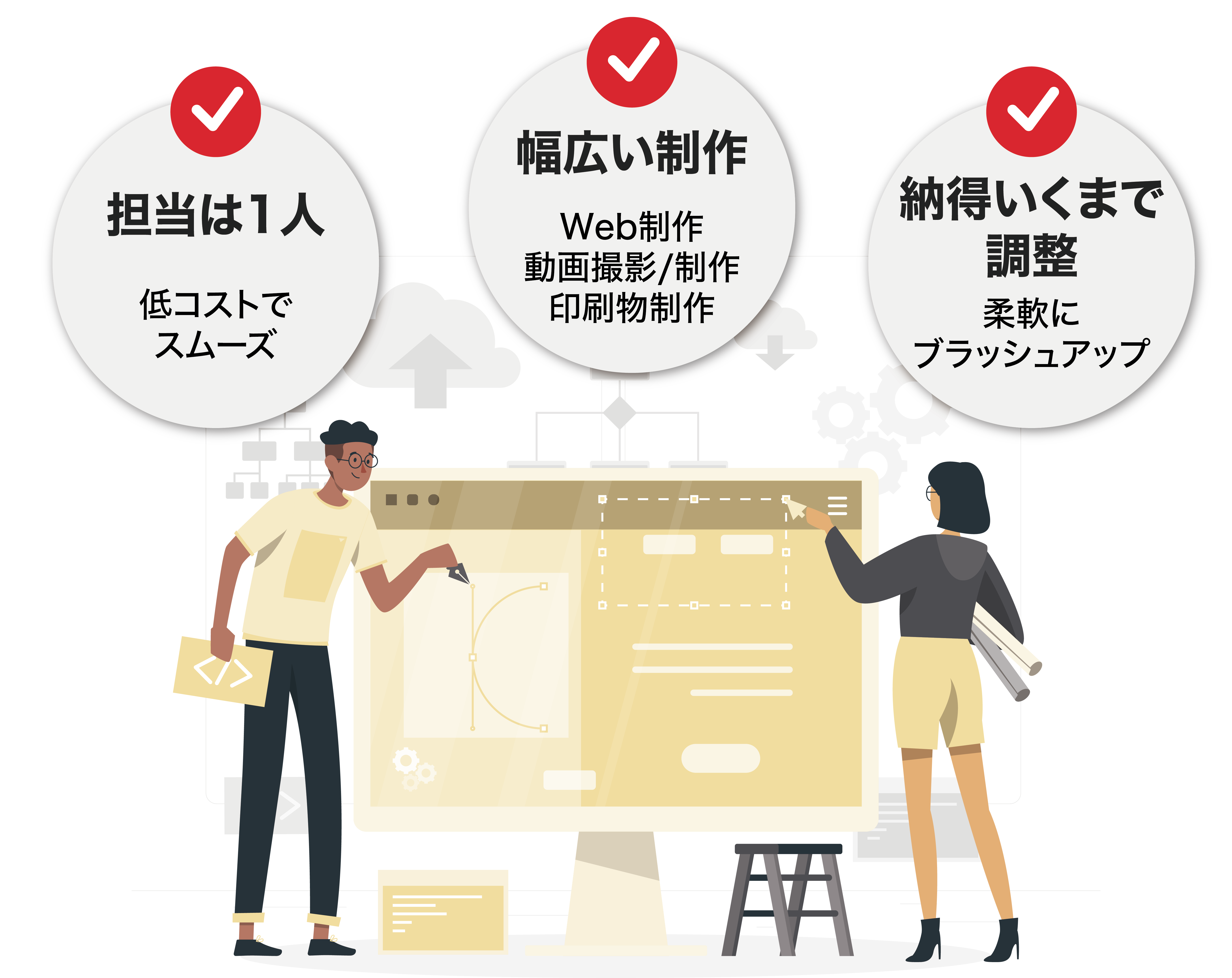 基本的に制作・運用は1名の担当者が一貫して対応します。無駄な工数を削減し、コストも抑えた効率的な運用が可能です。