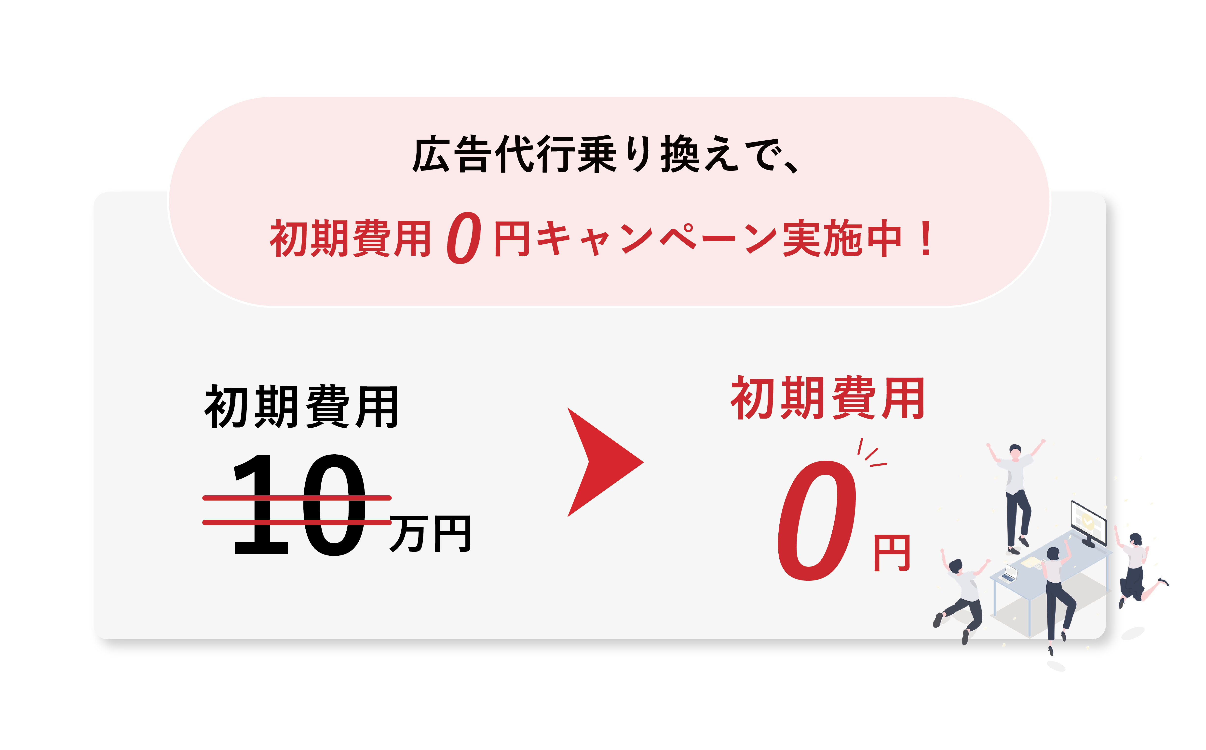 現在、広告代理店をご利用中の企業様を対象に、 広告運用乗り換え限定の初期費用無料キャンペーンを開始いたしました。